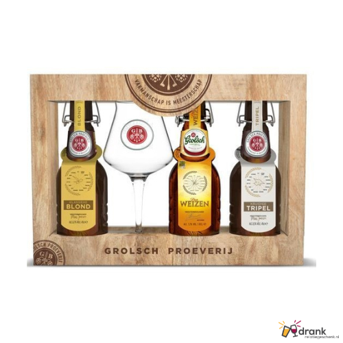 Drankrelatiegeschenk met Grolsch Inhoud verpakking 1x Grolsch Proeverij - Speciaalbieren Grolsch Proeverij - Speciaalbieren Maak...
