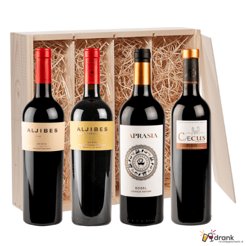 Drankrelatiegeschenk met Rode Wijnen Inhoud verpakking 1x Finca los Aljibes Petit Verdot 1x Finca los...