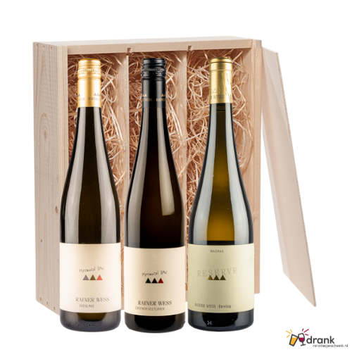 Drankrelatiegeschenk met Rainer Wess Inhoud verpakking 1x Rainer Wess Kremstal Riesling 1x Rainer Wess Kremstal...